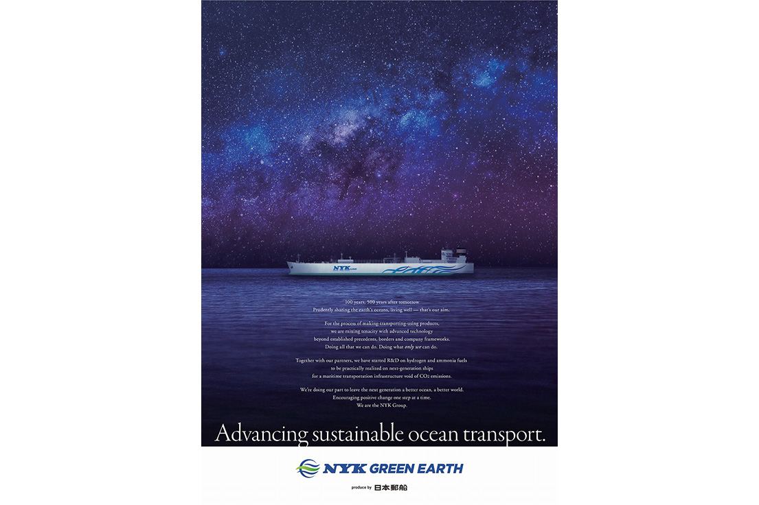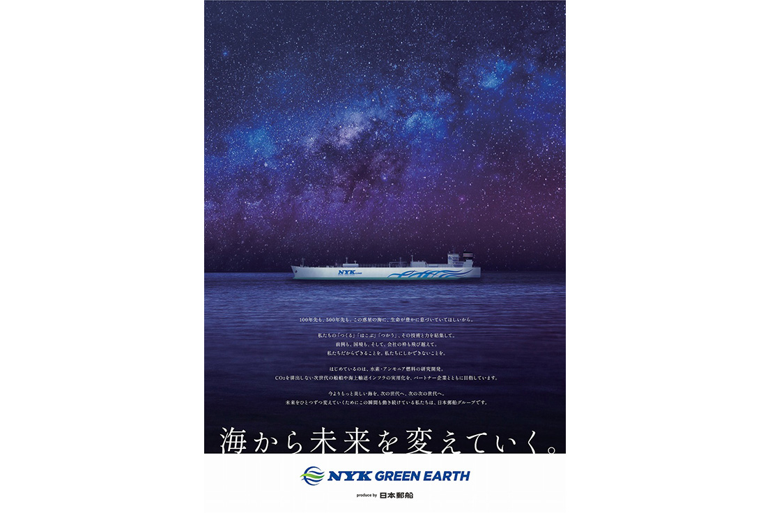 一眼で思いを伝える為に、プロジェクト名から提案。加えてキャッチコピー、ステートメ ント、キービジュアルを開発。石油燃料に代わるアンモニア燃料、水素燃料など次世代燃 料の普及を全社で促進する姿勢を、世の中に伝えるためのツールとして機能するクリエイ ティブ企画・制作しました。